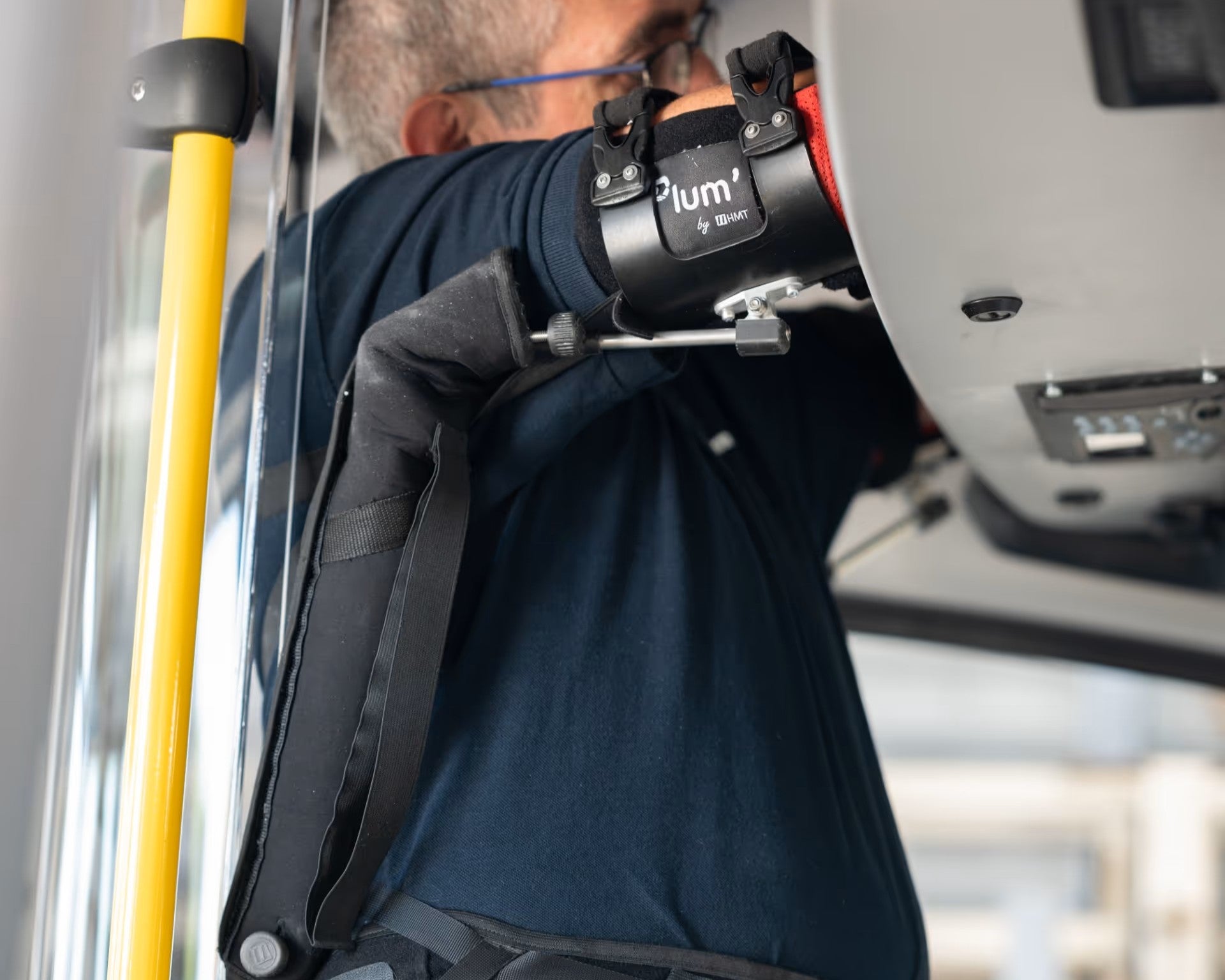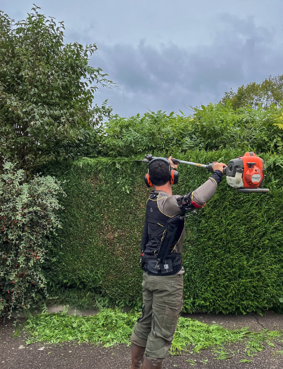 Ist der Arm oben übernimmt das exo das Gewicht.